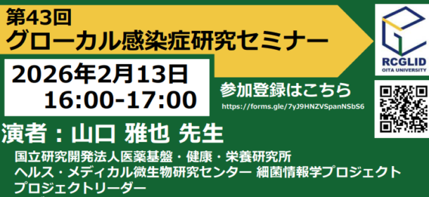 大分大学グローカル感染症研究センターは、令和5年1月12日(木)に第6回グローカル感染症研究セミナーを開催しました。第6回目は、「大腸菌と赤痢菌の血清型の関係をゲノム情報からひもとく」と題し、講師に井口 純先生(宮崎大学 農学部畜産草地科学科動物衛生微生物学分野 准教授、産業動物防疫リサーチセンター・CADIC(兼任))を招いて実施しました。