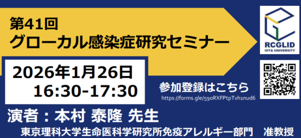 大分大学グローカル感染症研究センターは、令和5年2月15日(水)に第11回グローカル感染症研究セミナーを開催しました。第11回は、本センター副センター長の山岡生教授が研究代表者を務める地球規模課題対応国際科学技術協力プログラム(SATREPS)による「ブータン国ピロリ菌感染症関連死撲滅に向けた中核拠点形成事業」の一環として行いました。
